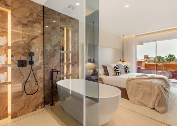 Living here means being close to some of the best venues in the area. The famous Kempinski Hotel Bahia, with its luxury spa and dining, is nearby, as is Laguna Village, a stylish spot for shopping and beach clubs. For golf lovers, the El Paraiso Golf Club and Atalaya Golf & Country Club are within easy reach. Families will appreciate the proximity to Selwo Aventura, a unique wildlife park, and the Estepona Marina, which is great for boat trips and fresh seafood. Estepona town centre is just a short walk or bike ride along the coastal path, offering even more shops, restaurants, and cultural activities for everyone to enjoy.