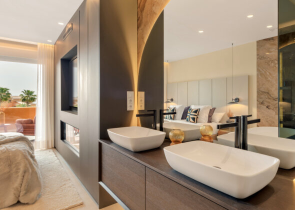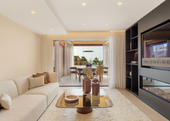 This is a luxury three-bedroom apartment set right on the beachfront in Estepona East, Malaga, on the sought-after New Golden Mile. With direct access to the beach and a private terrace offering amazing sea views, this property is perfect for those who love the sound of the waves and the feeling of sand just steps away. The area is lively and convenient, with shops, restaurants, and transport links all close by, making everyday life easy and enjoyable. The apartment is fully furnished and ready to move in, so you can start enjoying the Mediterranean lifestyle straight away.