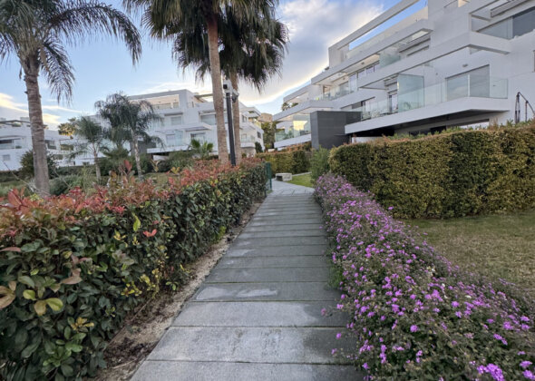 Ideally situated, the apartment offers easy access to Estepona, Marbella, beaches, shops – Mercadona, Aldi, restaurants – Asador Tehuelche Grill, Amara café, and golf courses Atalaya, making it a perfect choice for those seeking a relaxed yet well-connected Costa del Sol lifestyle. A beautiful commercial center by Archidom Studio is being built within walking distance from the Marques de Guadalmina complex.
