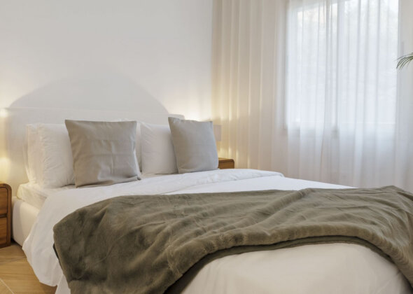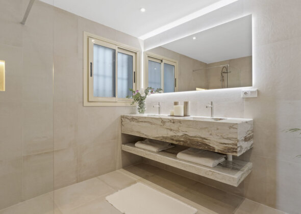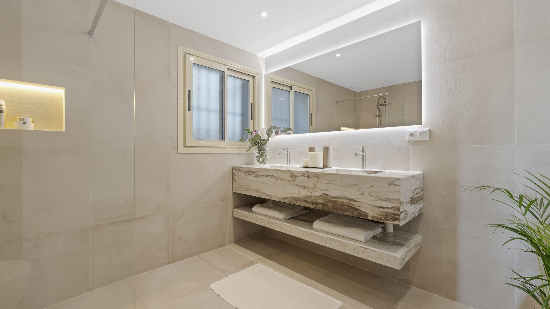 Recently renovated with custom-made furnishings and marble sinks, this apartment reflects a refined taste and attention to detail. Its private garden and pool, coupled with access to two communal pools, provide a perfect blend of intimacy and community living.