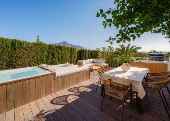 Recently renovated with a refined Scandinavian touch, this ground-floor residence showcases custom carpentry and bespoke furnishings for truly elegant living. Nestled within the exclusive gated community of Los Belvederes, the property is located in the prestigious La Cerralilla area, at the heart of Nueva Andalucía.