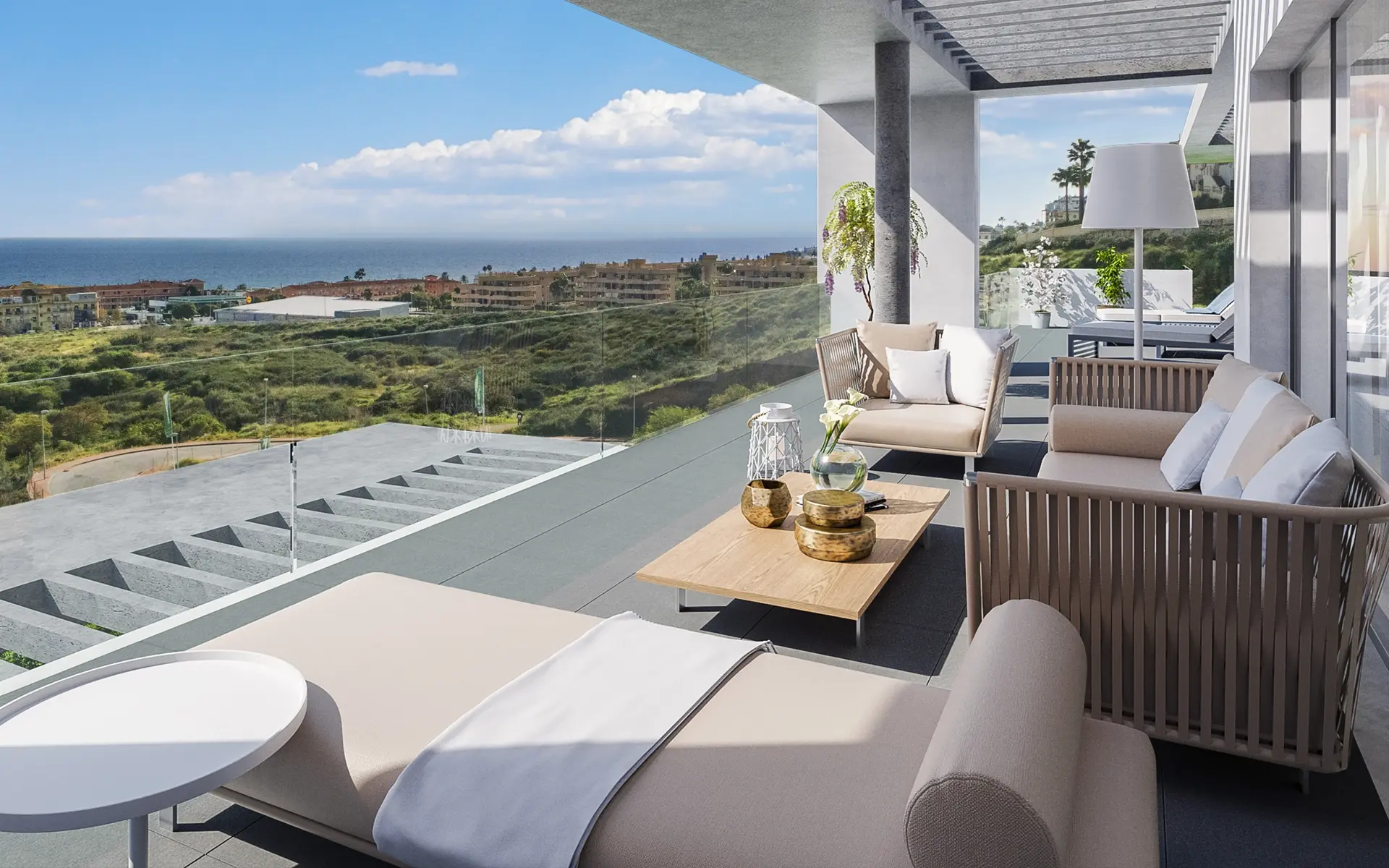 Navigolf Suites, the fifth phase of the prestigious residential complex in La Cala de Mijas. An exclusive development of 50 homes with 1, 2 and 3 bedrooms, featuring a terraced architecture that blends seamlessly with the surroundings and offers breathtaking sea views.