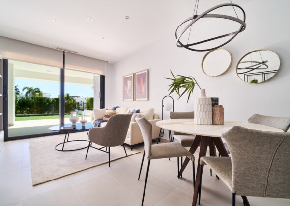 Key Ready, fully furnished ground floor in a new development inside a gated community with pools, gardens and jacuzzis.