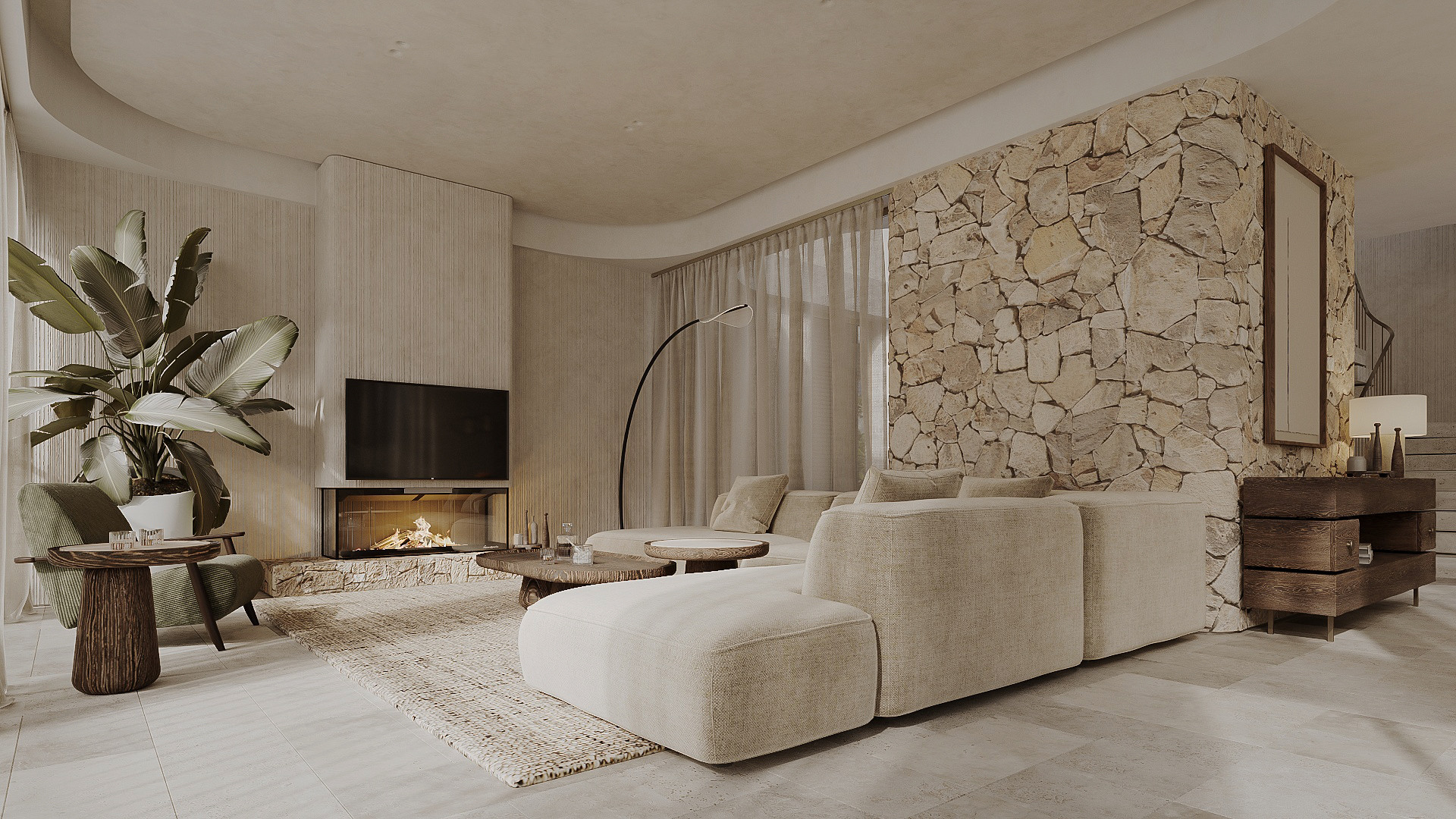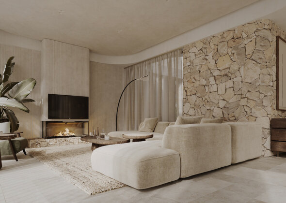 Each residence is designed with generous interiors, floor-to-ceiling windows and a timeless blend of natural stone, warm wood and soft neutral tones. Open-plan living areas flow seamlessly into spacious outdoor terraces, creating a serene environment ideal for entertaining, relaxing and enjoying the panoramic views. Designer kitchens, bespoke details, underfloor heating and a gas fireplace enhance the sense of comfort and refinement throughout.