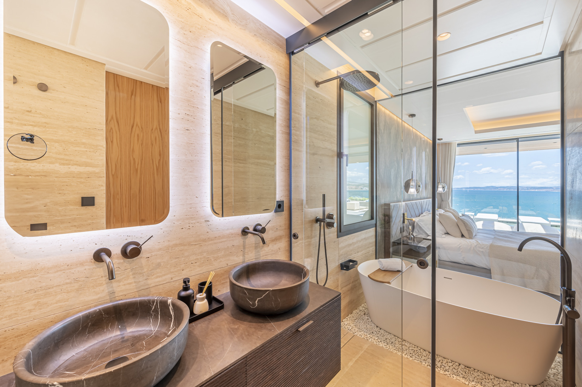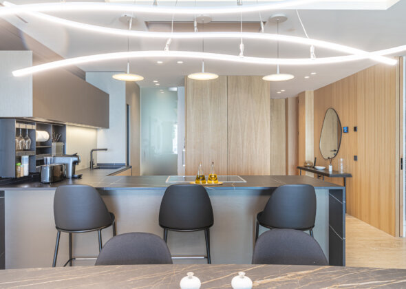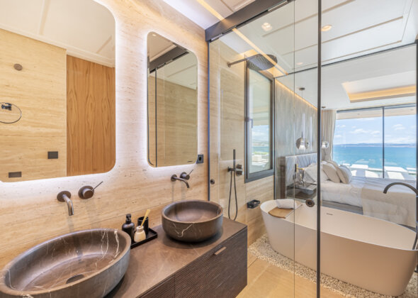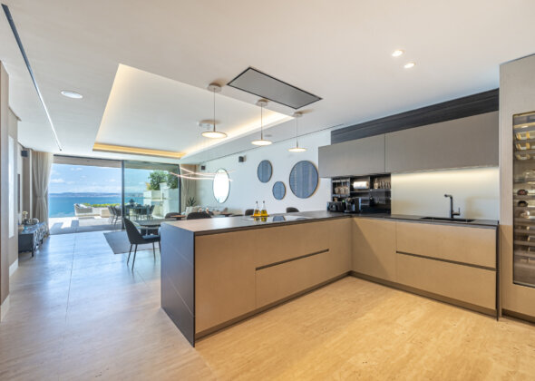 Each south-facing apartment has been crafted to maximise natural light and uninterrupted bay and sea views. Large terraces flow seamlessly from generous interior spaces, creating an effortless connection between indoor comfort and Mediterranean outdoor living. Advanced home-domotics provide intuitive control over lighting, climate, and security, while high-end materials and precision finishes ensure a distinctly refined atmosphere throughout.