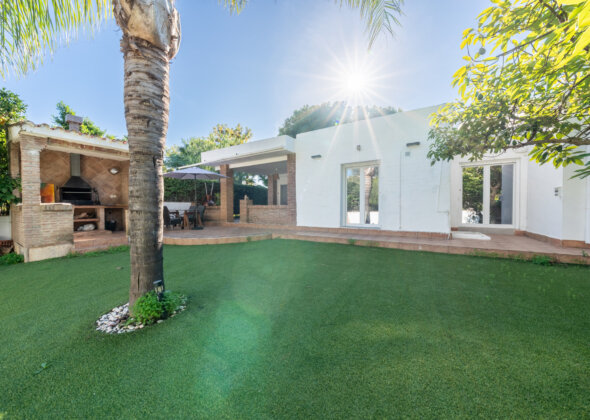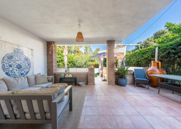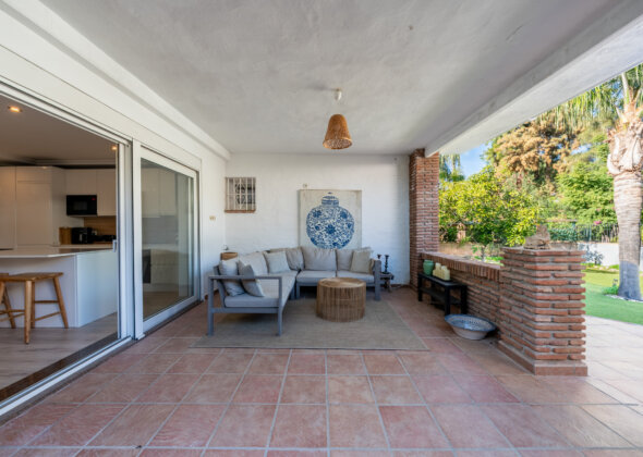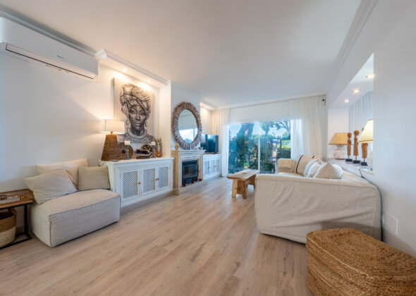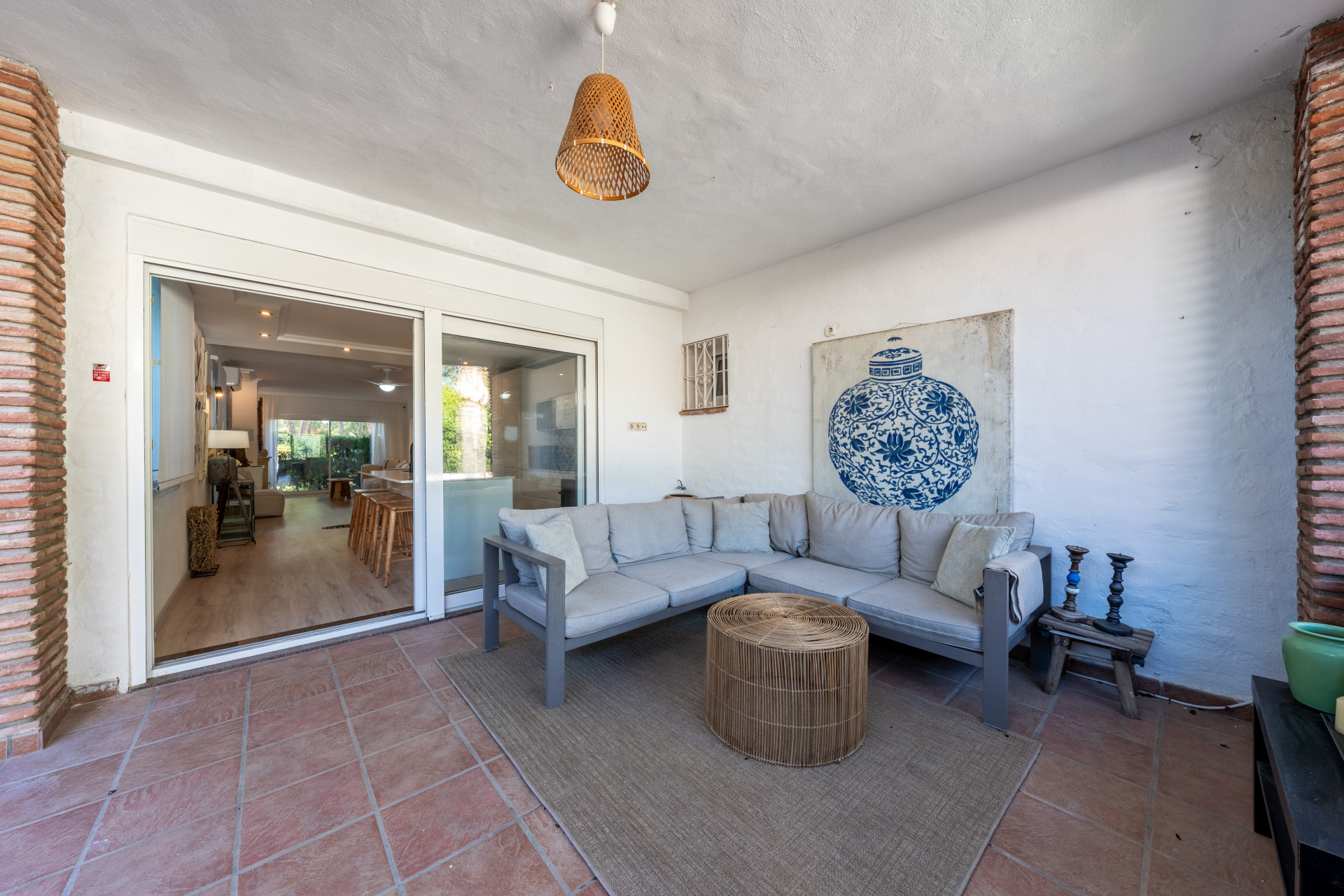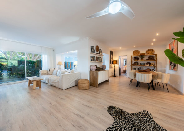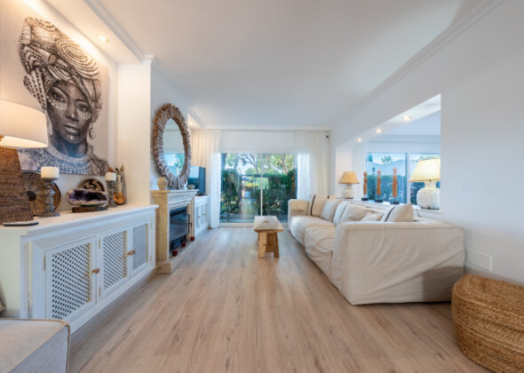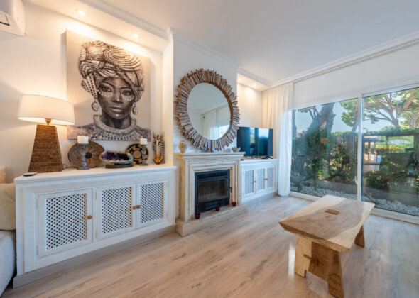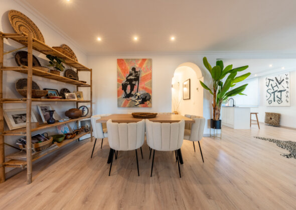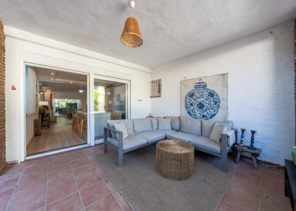 A charming three-bedroom semi-detached home in Marbella East, this property blends relaxed Mediterranean living with a refined boho-chic interior aesthetic.