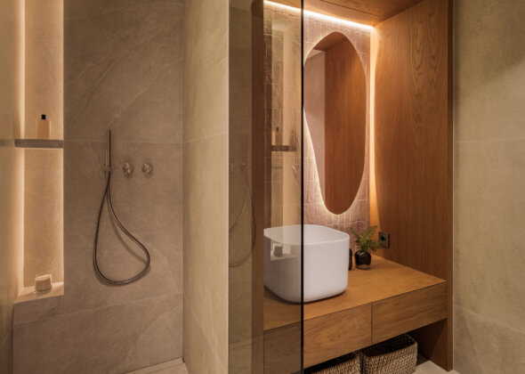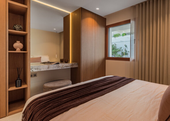 The spacious master bedroom enjoys its own en-suite bathroom, while the remaining bedrooms are generously sized and thoughtfully laid out for family living or guests. Underfloor heating enhances comfort year-round, complementing the home’s high-quality finishes and well- considered design. The property offers multiple terraces, perfect for enjoying the tranquil surroundings, outdoor dining, and the