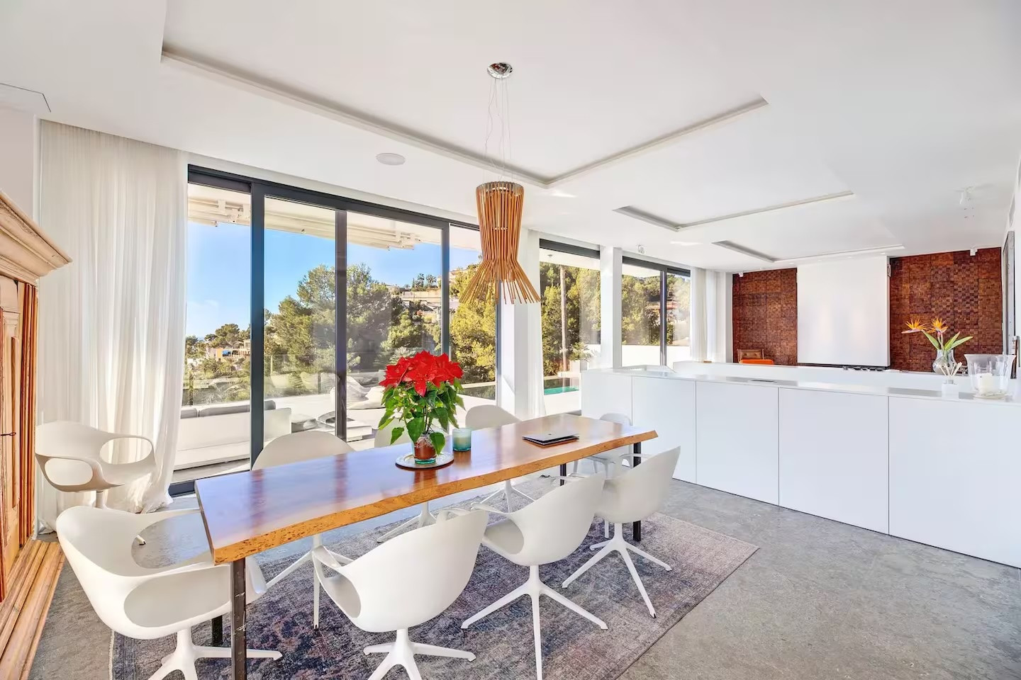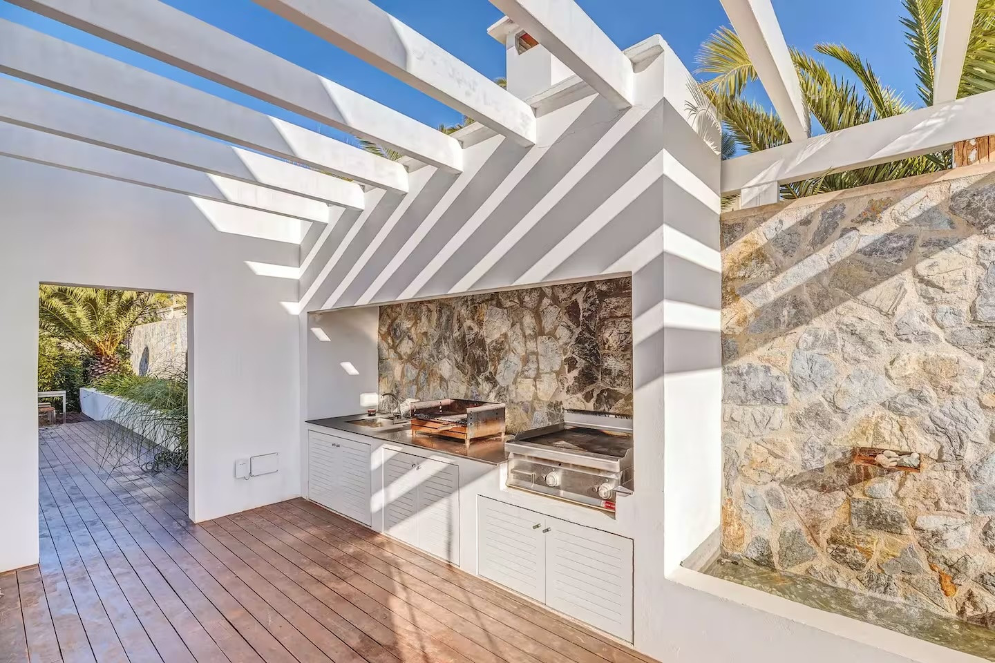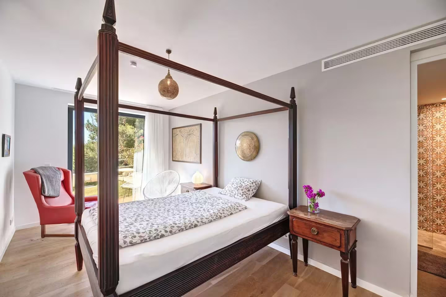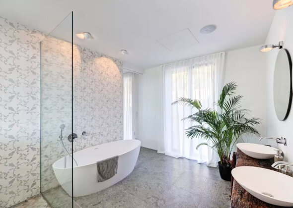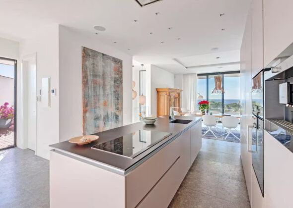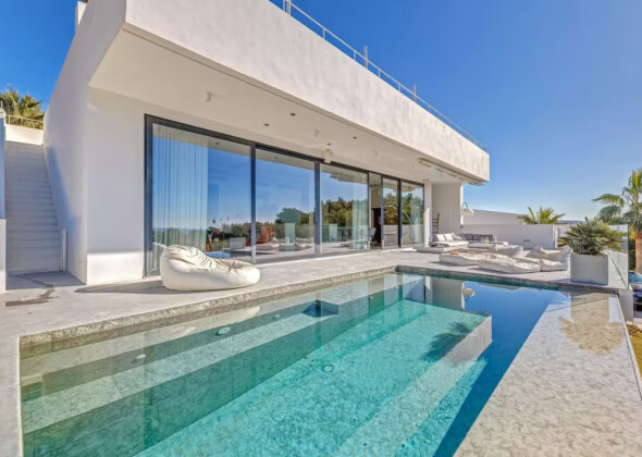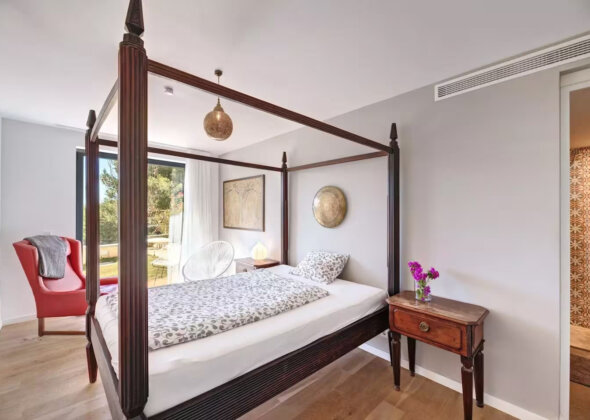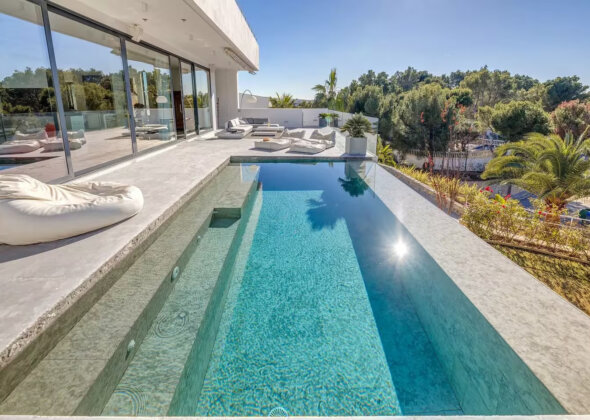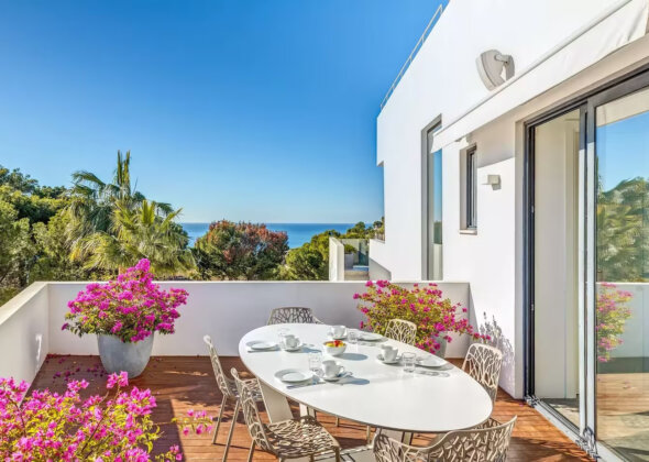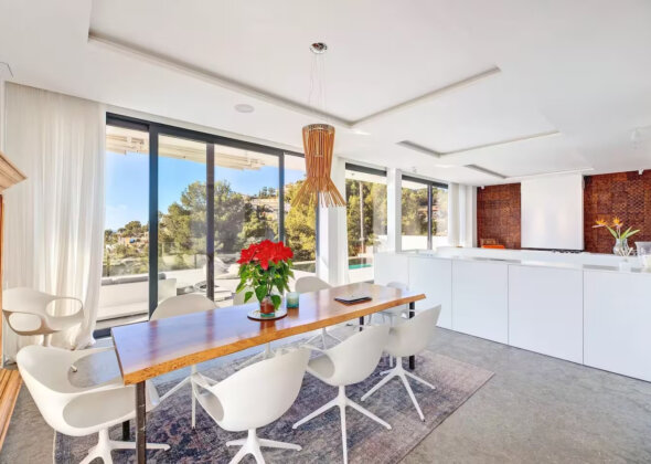 The villa features five bedrooms and four bathrooms plus a guest WC, offering generous accommodation for residents and guests alike. Living areas flow effortlessly onto sun-drenched terraces, while outdoor spaces have been designed for year-round enjoyment of Mallorca’s climate.