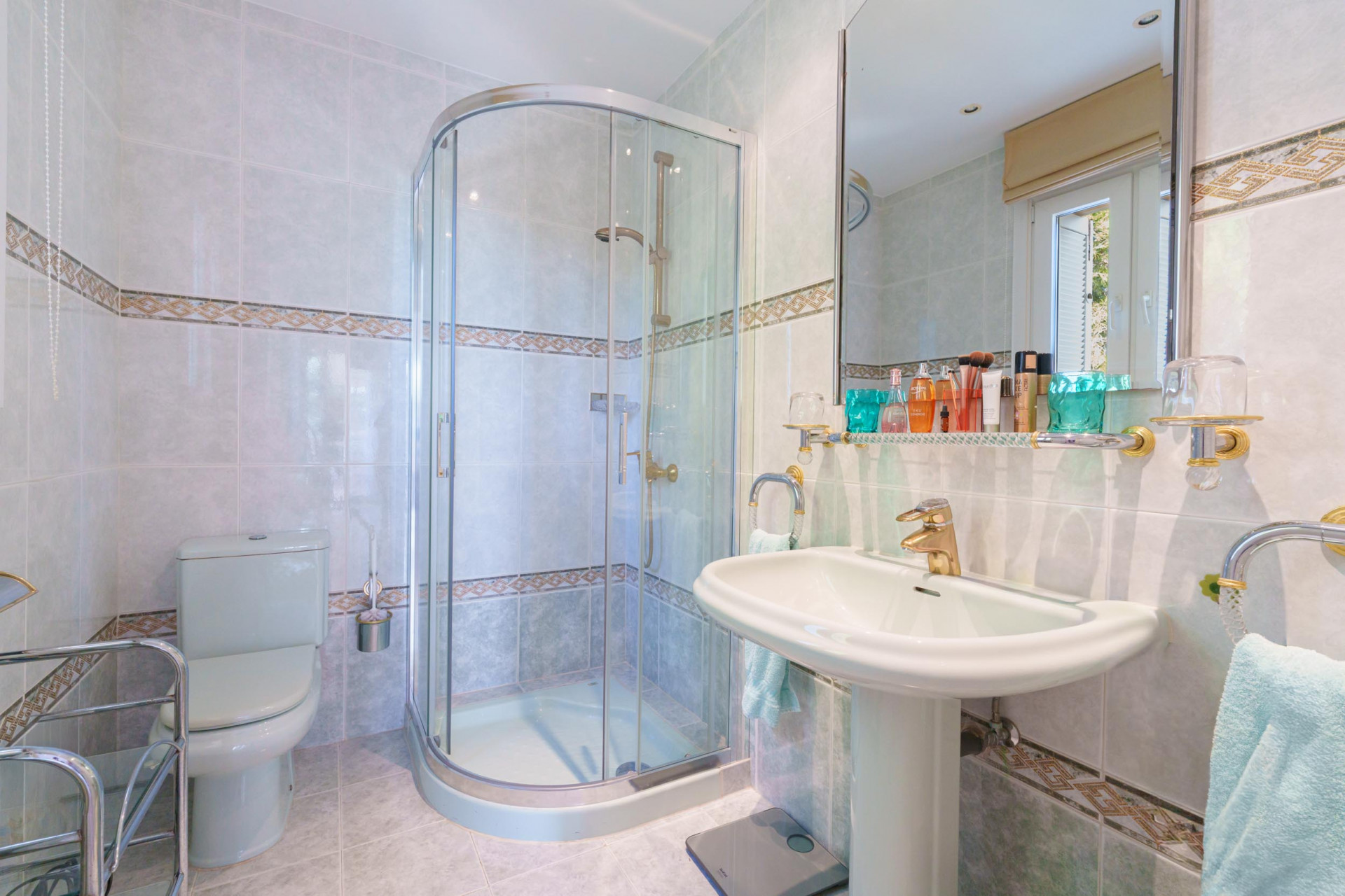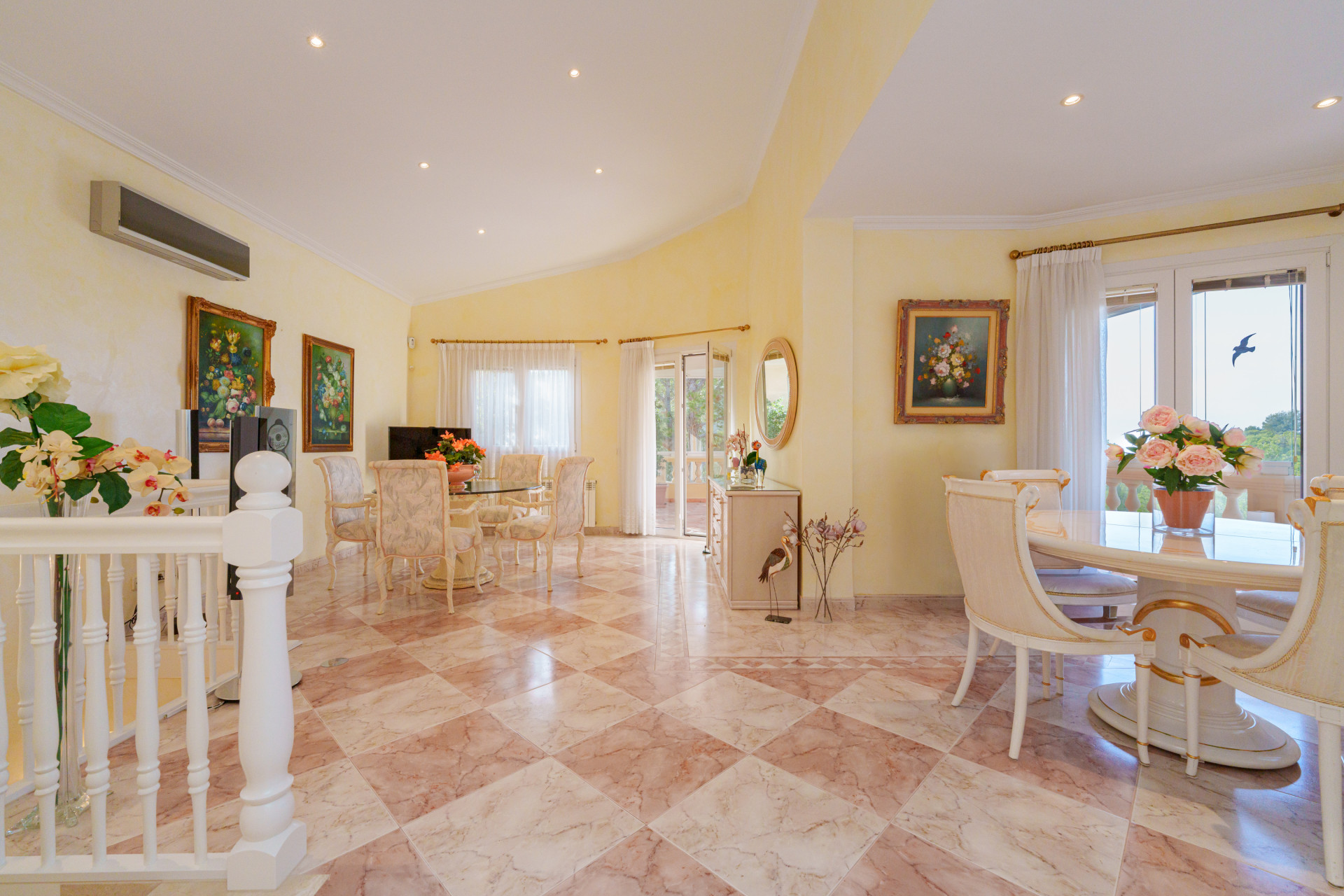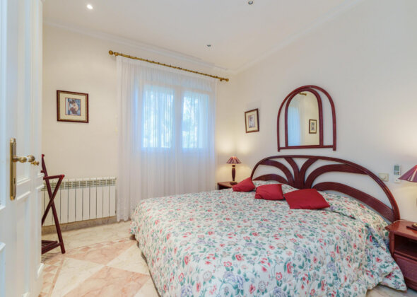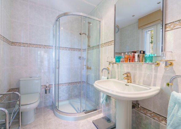 Inside, the home features 4 bright bedrooms and 5 bathrooms, including three en-suite bedrooms. The interiors are flooded with natural light and benefit from a comfortable year-round climate thanks to air conditioning (hot/cold), gas central heating, and an elegant open fireplace.