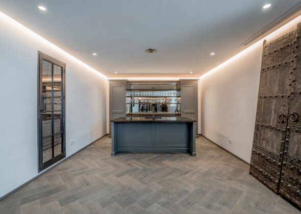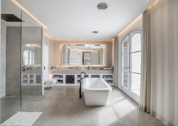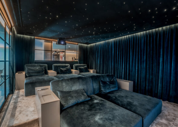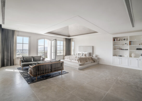 Every detail of the villa’s interior exudes sophistication and quality, featuring bespoke finishes, premium materials, and an integrated Bang & Olufsen sound system throughout. Expansive floor-to-ceiling windows showcase breathtaking views from nearly every room, creating a seamless connection with the picturesque surroundings.