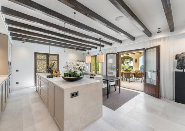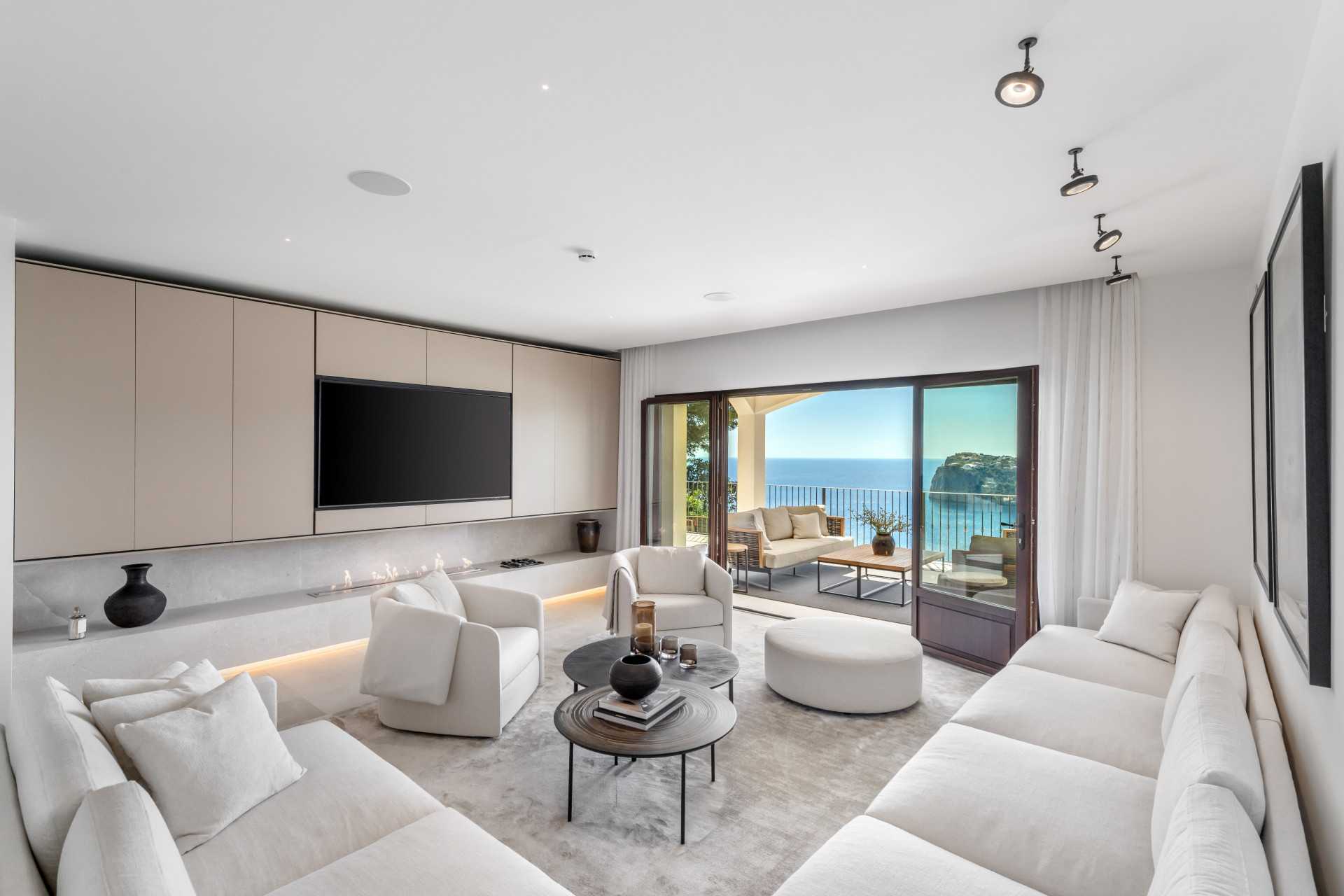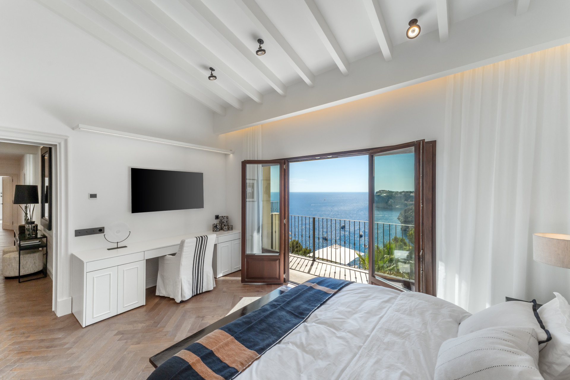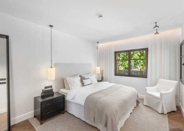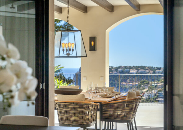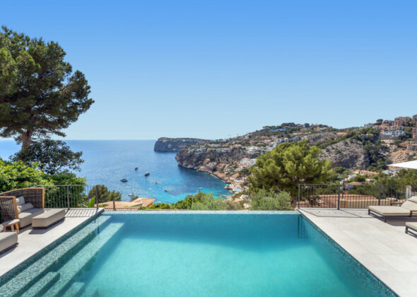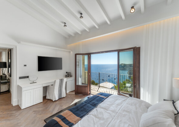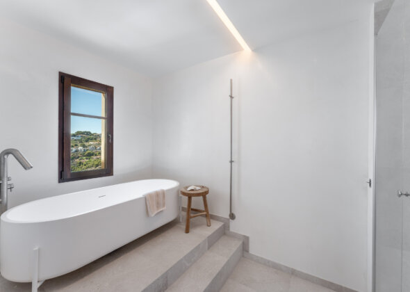 Dive into the luxurious realm of Villa Escape, a modern sanctuary exuding Scandinavian charm and offering panoramic sea views that meld seamlessly with the enchanting ambiance of Cala Llamp in Port d’Andratx, Mallorca. This stunning villa, meticulously styled by Slettvoll after undergoing a meticulous refurbishment, envelops you in a warm embrace from the moment you step inside. The allure of the property is enhanced by the exquisite wooden parquet flooring and elegant stone floors that grace the interior. To ensure a harmonious living experience throughout the year, the villa is equipped with climate control features such as air conditioning for the warmer months and underfloor heating powered by an efficient heat pump for the cooler seasons.