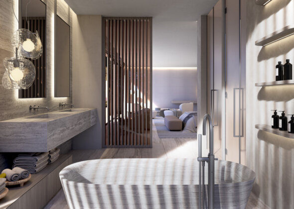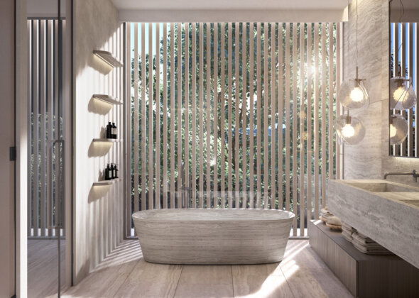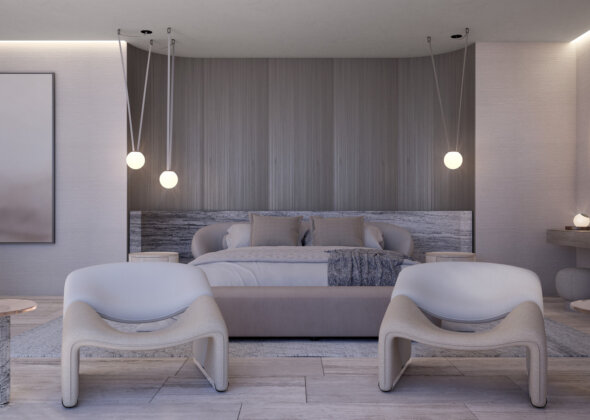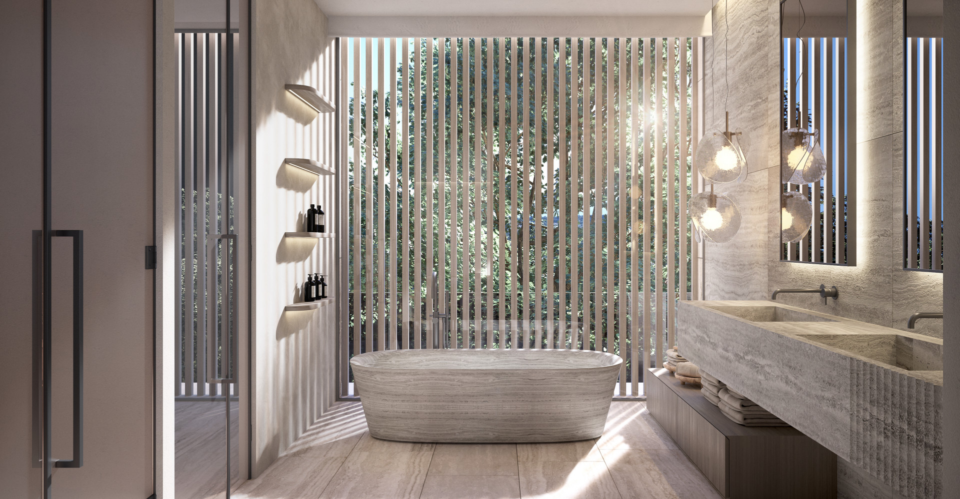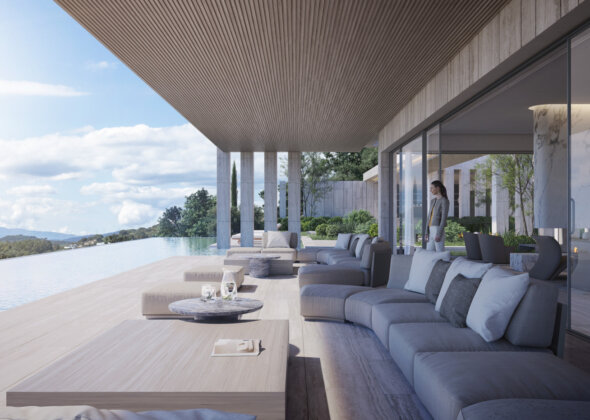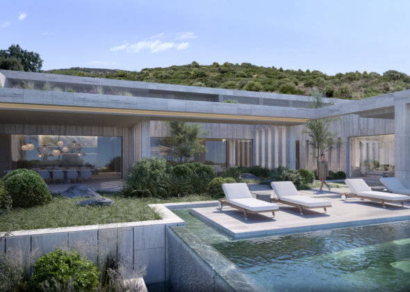 The landscape design enhances the architecture, integrating lush vegetation and water elements that create a soothing, sensory experience. The house is not merely a structure but an immersive environment where nature and design coexist in perfect harmony. Every space has been conceived to invite tranquility, privacy, and a feeling of effortless luxury.