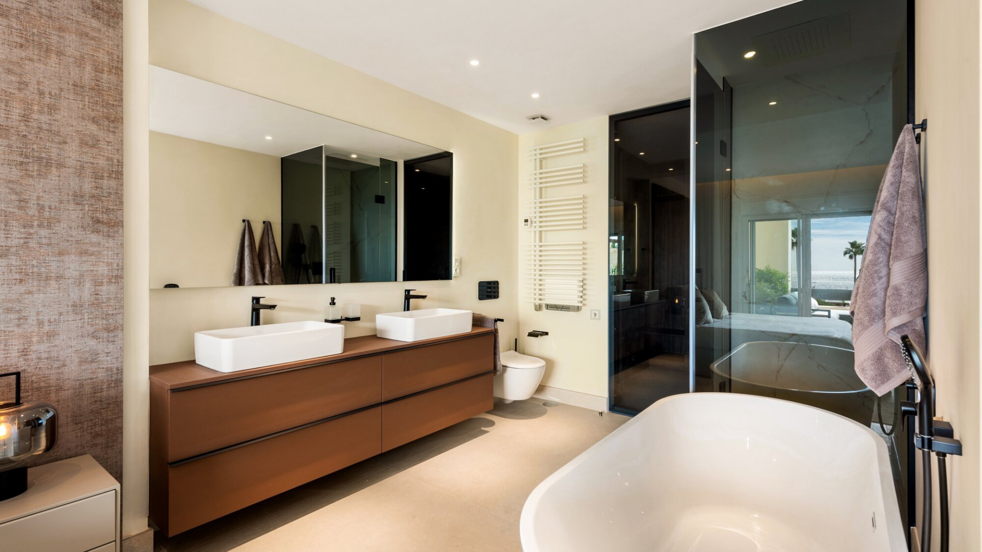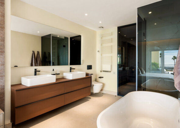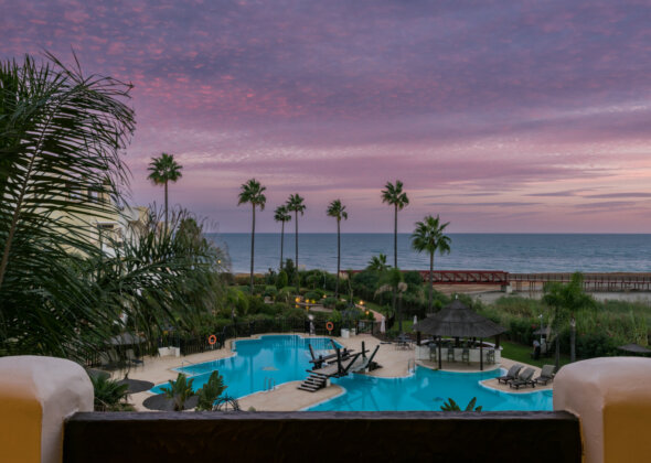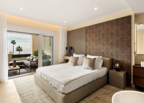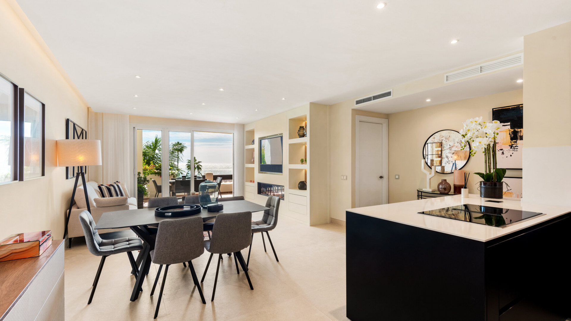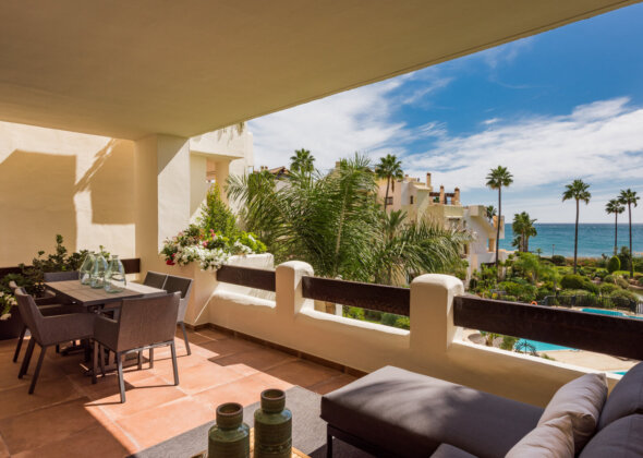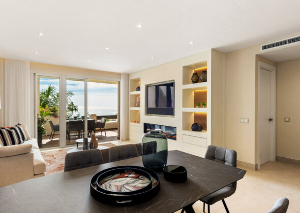 Fully renovated top quality 3-bedroom second floor apartment in Bahia del Velerin. Frontline beach, south – West facing, sea views, quiet and private. Direct access to the beach.