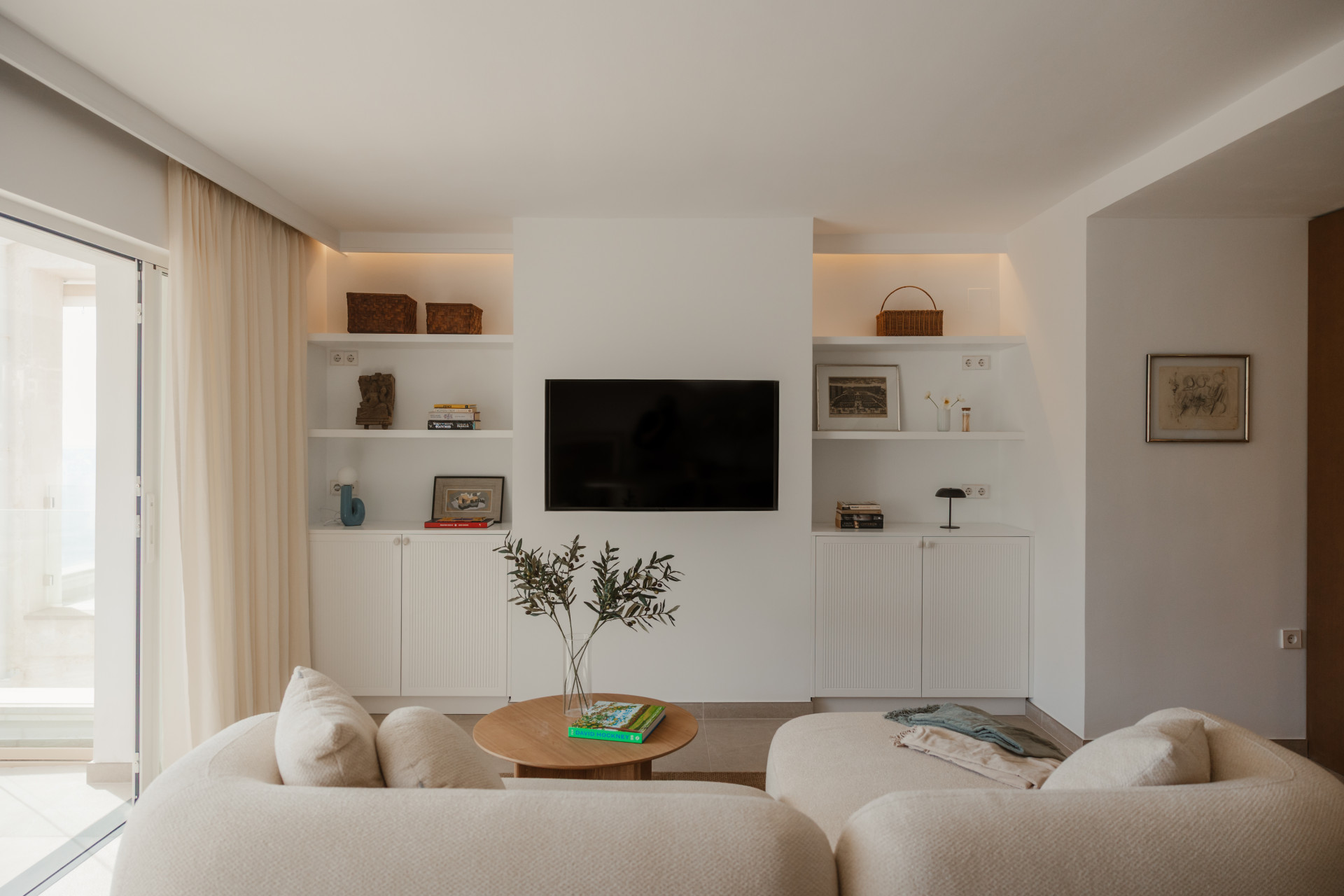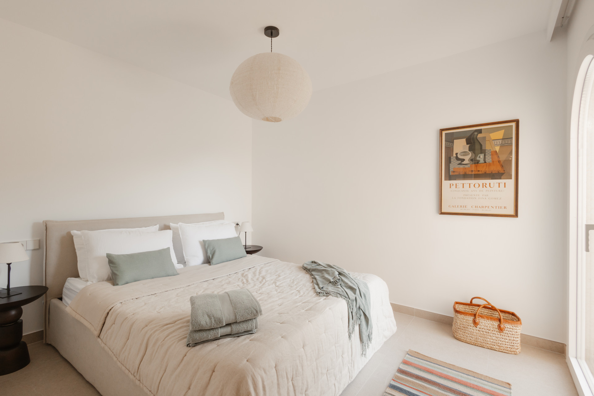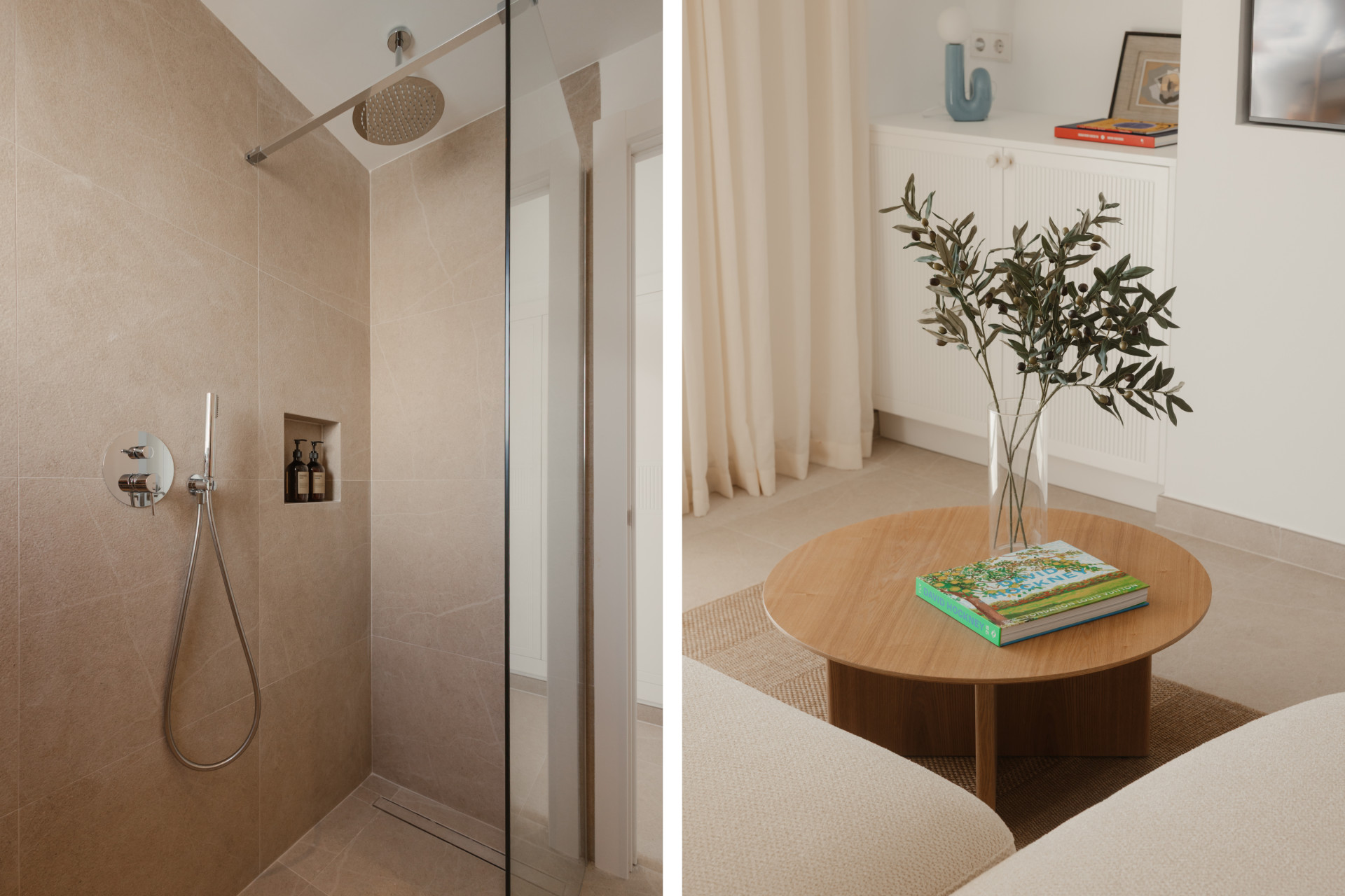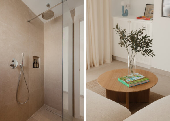 The apartment offers 2 spacious bedrooms and 2 modern bathrooms, including a luxurious en suite. Each room reflects a harmony of clean lines, natural materials, and soothing tones, echoing the beauty of the surrounding landscape. The bathrooms, adorned with elegant fixtures, transform everyday routines into moments of relaxation.