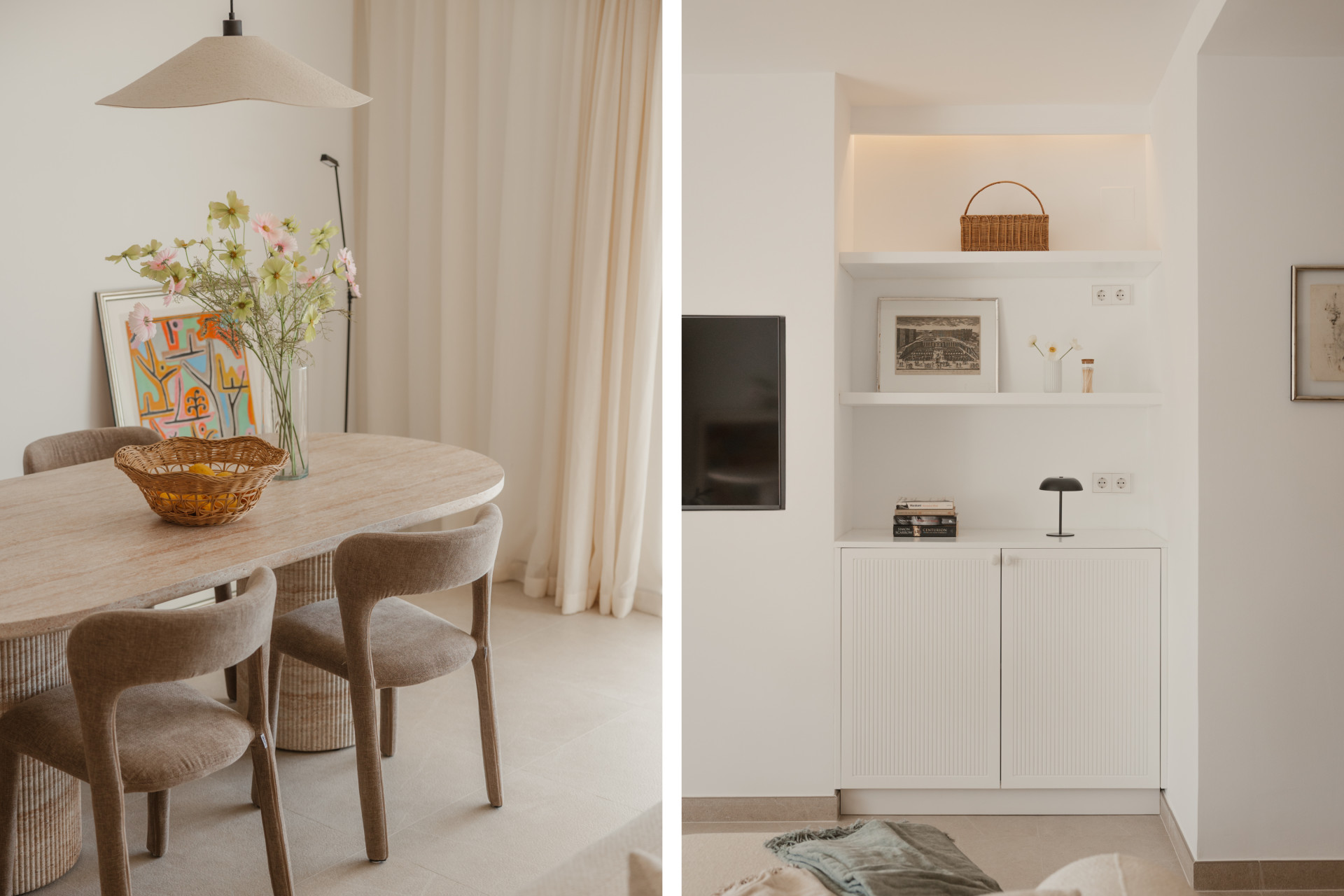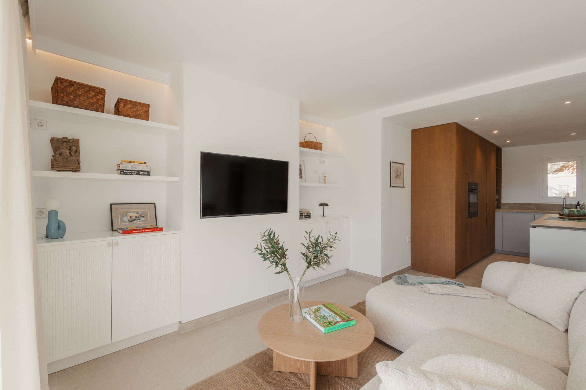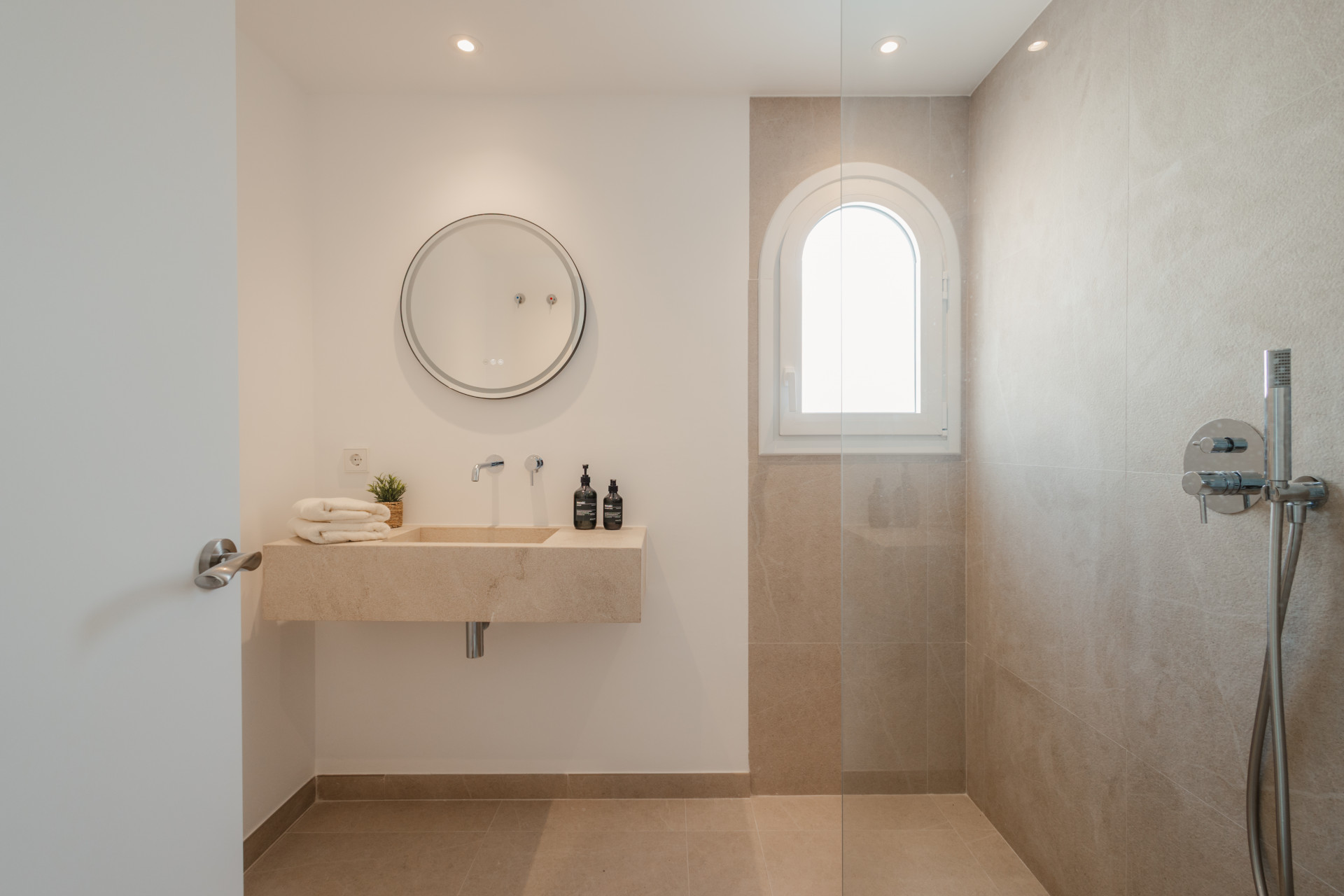 The apartment offers 2 spacious bedrooms and 2 modern bathrooms, including a luxurious en suite. Each room reflects a harmony of clean lines, natural materials, and soothing tones, echoing the beauty of the surrounding landscape. The bathrooms, adorned with elegant fixtures, transform everyday routines into moments of relaxation.