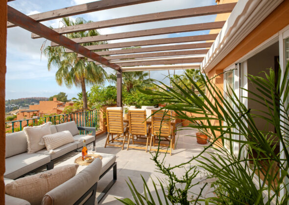 Experience breathtaking, panoramic views from this beautifully designed Scandinavian-style luxury penthouse. Located in the prestigious urbanization of Les Belvederes in Nueva Andalucía, this stunning community offers the perfect blend of tranquility, luxury, and convenience. This spacious 3-bedroom, 2-bathroom home features modern, open-plan living with an abundance of natural light and expansive south-facing terraces.