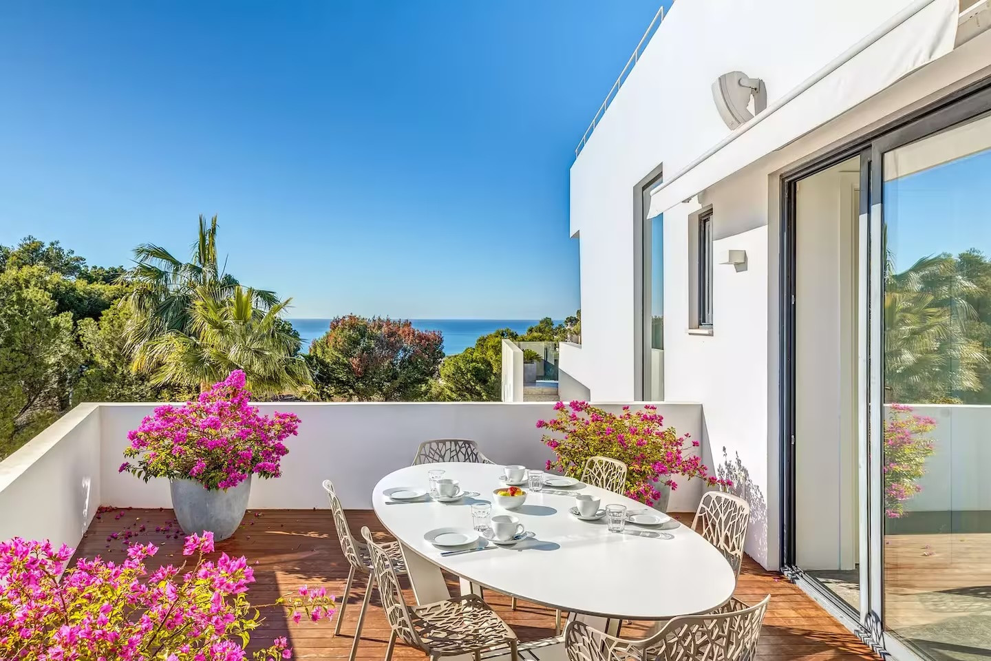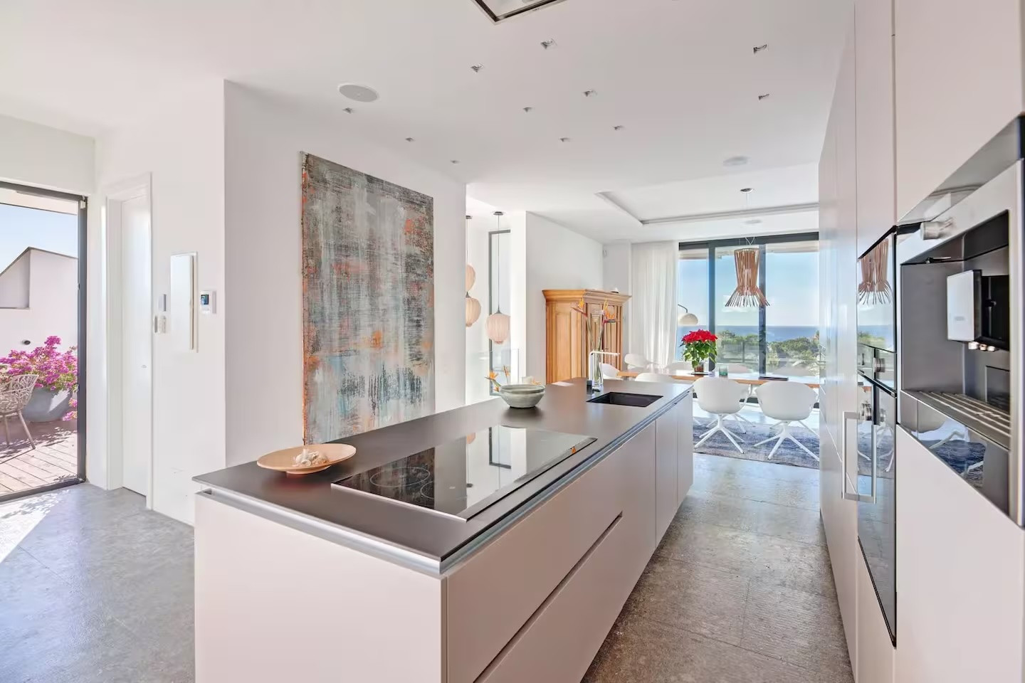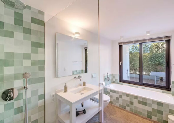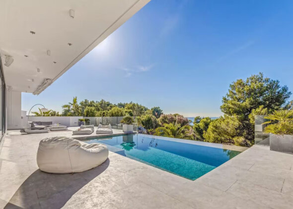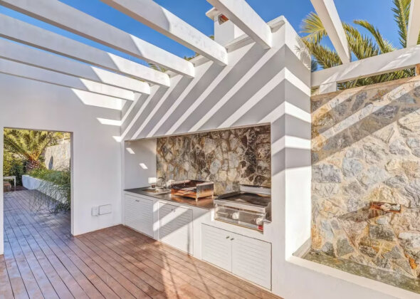 The villa features five bedrooms and four bathrooms plus a guest WC, offering generous accommodation for residents and guests alike. Living areas flow effortlessly onto sun-drenched terraces, while outdoor spaces have been designed for year-round enjoyment of Mallorca’s climate.
