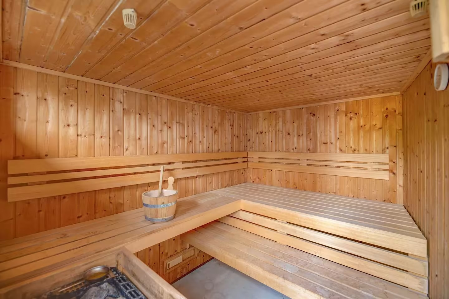 A selection of premium lifestyle features elevates the home further, including a private sauna, jacuzzi, and a rooftop gym with open views — creating a discreet wellness retreat within the property itself.