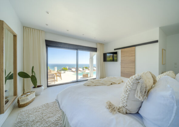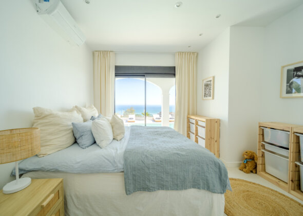 Upon entering the villa, you are greeted by a grand entrance that leads to a spacious living room with large windows showcasing the breathtaking sea views. The property features a sparkling pool, perfect for relaxing and enjoying the Mediterranean sun.