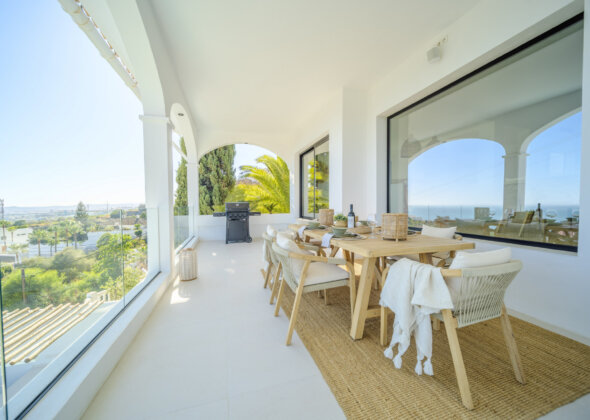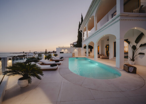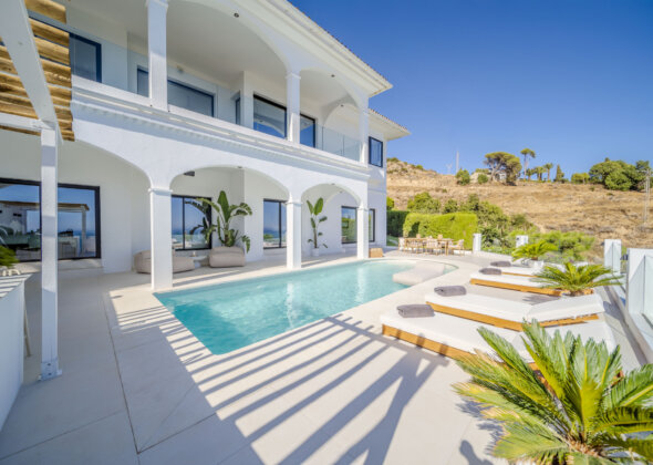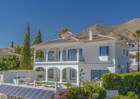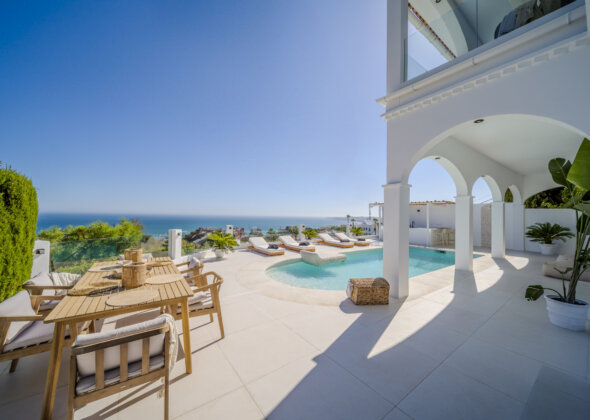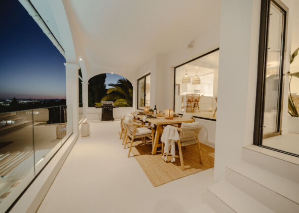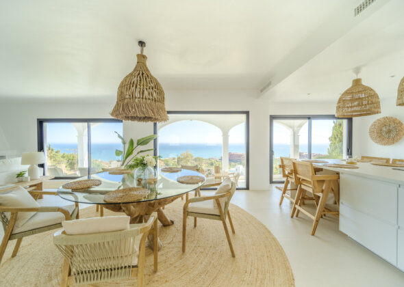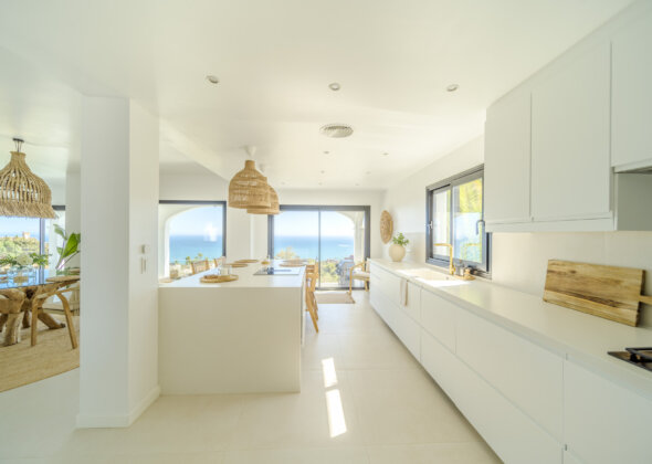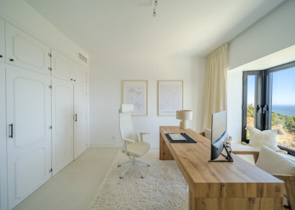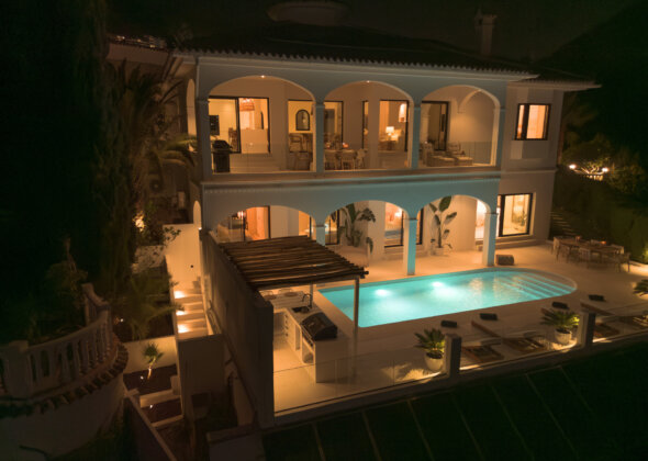We present a luxurious property located in the exclusive neighborhood of La CapellanĂa. This stunning home boasts panoramic views of the sea and mountains, offering a serene and picturesque setting for its residents.