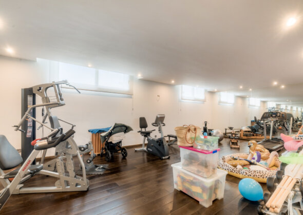 A breathtaking driveway leads to the grand entrance, setting the tone for the refined luxury within. The villa boasts five well-appointed bedrooms, each with en-suite bathrooms, and an additional guest bathroom. The interiors are thoughtfully designed with high-end finishes, expansive windows that bathe the spaces in natural light, and seamless indoor-outdoor transitions.