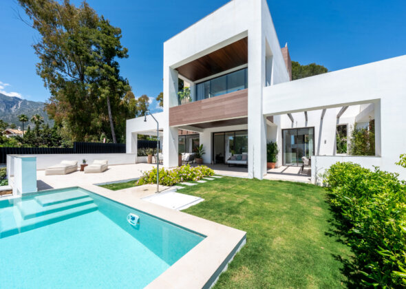 In the heart of the Golden Mile is this elegant contemporary villa, an architectural gem that combines modern design with maximum comfort. With four en-suite bedrooms, spacious indoor and outdoor spaces, and an open distribution that flows naturally, this property represents one of the best residential opportunities in Marbella for those looking for luxury, privacy and unbeatable location. Large windows, high ceilings and careful natural lighting define an atmosphere of serene sophistication in each room.