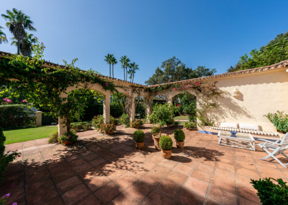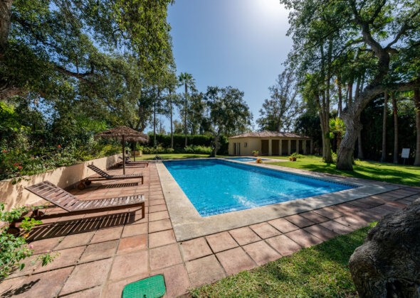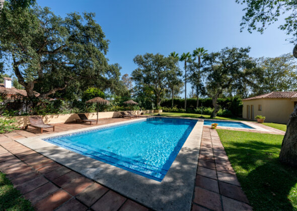 This lovely villa is set in the peaceful and secure neighbourhood of Sotogrande, Cadiz. Located in a quiet residential area, the property is just a short walk from the famous Sotogrande Marina and very close to the beautiful beaches and top golf courses like Valderrama and San Roque. The Sotogrande International School is also nearby, making this villa an ideal choice for families.